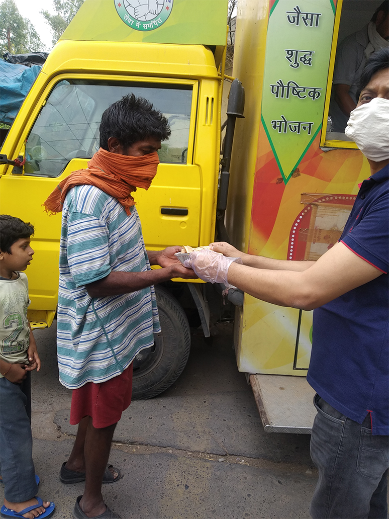 For the campaign “आओ मदत का हाथ बढ़ाएँ”, distribution of lunch for needy ones was organized in association with Hedgover Hospital.