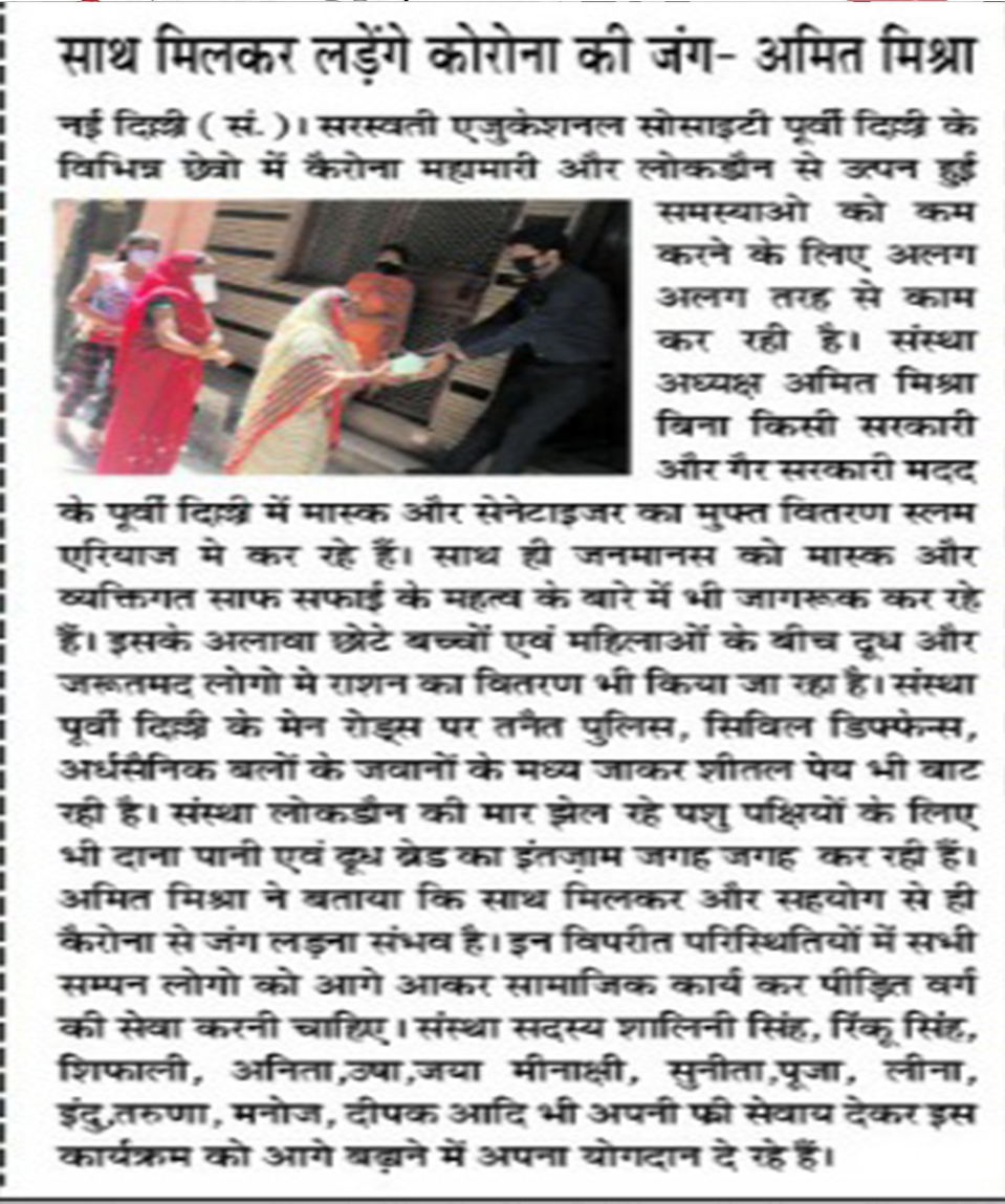ESSENTIAL COMMODITIES AND GROCERIES DISTRIBUTED IN THE EAST DELHI BY THE DIRECTOR (MR. AMIT MISHRA) & THE TEAM OF SES.
